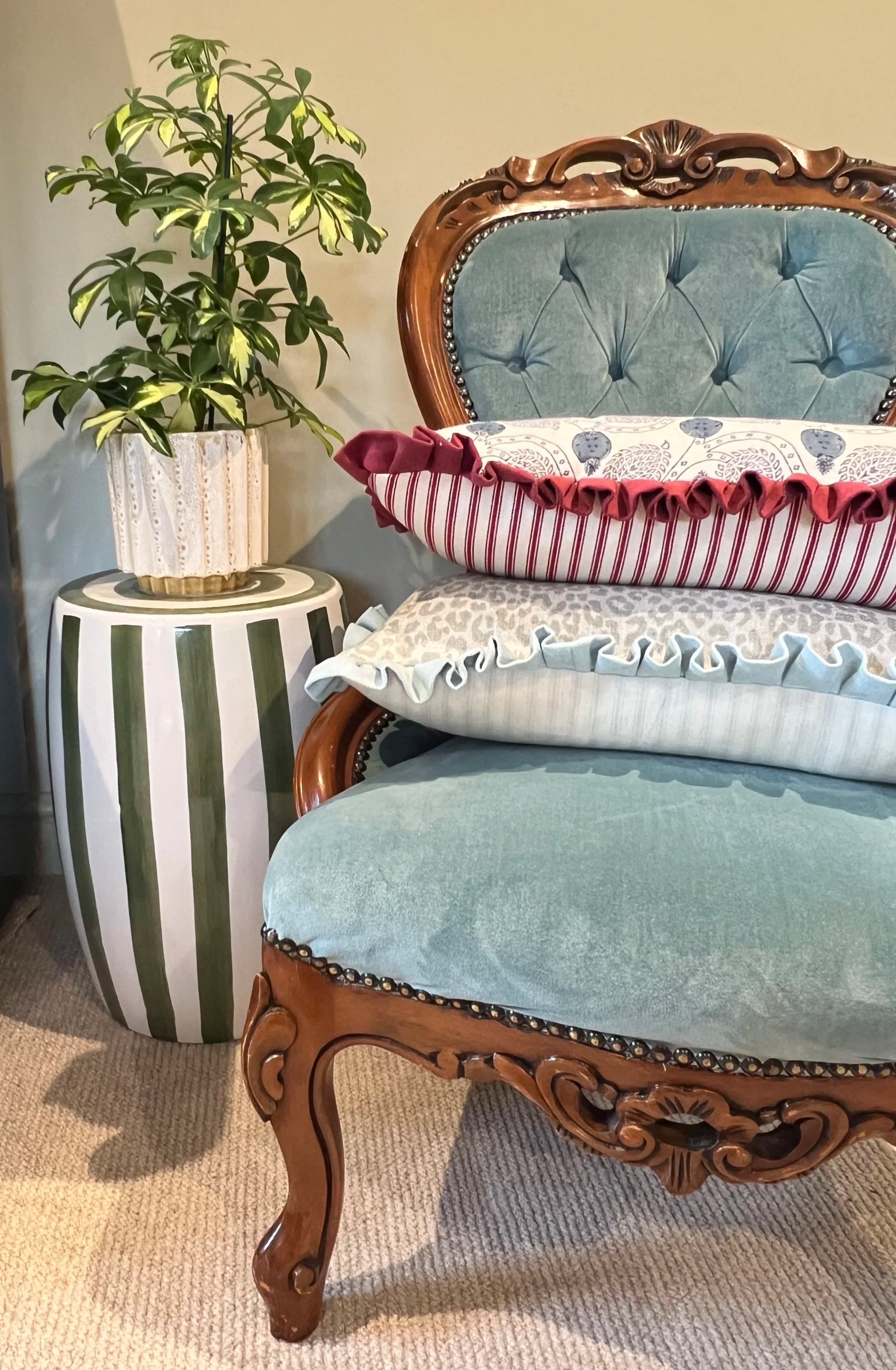When it comes to cushions, I’m a fabric treasure hunter! I love finding beautiful designer remnants and giving them a new lease of life as stunning, one-of-a-kind cushions. You can choose your own fabrics, add piping or frills, or opt for my ready-made collection – whatever suits your style best.