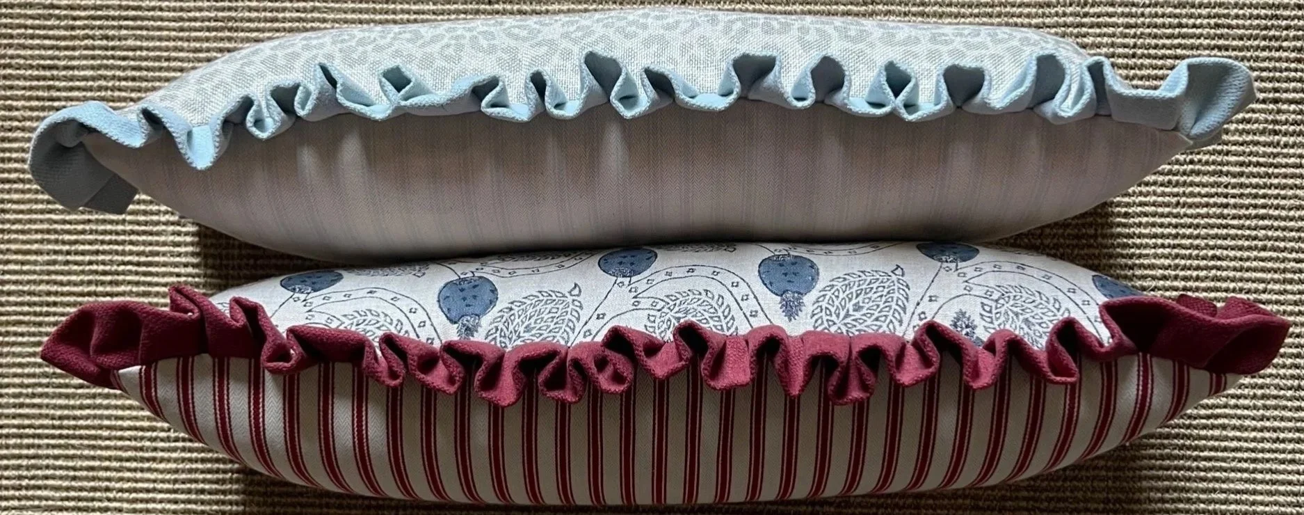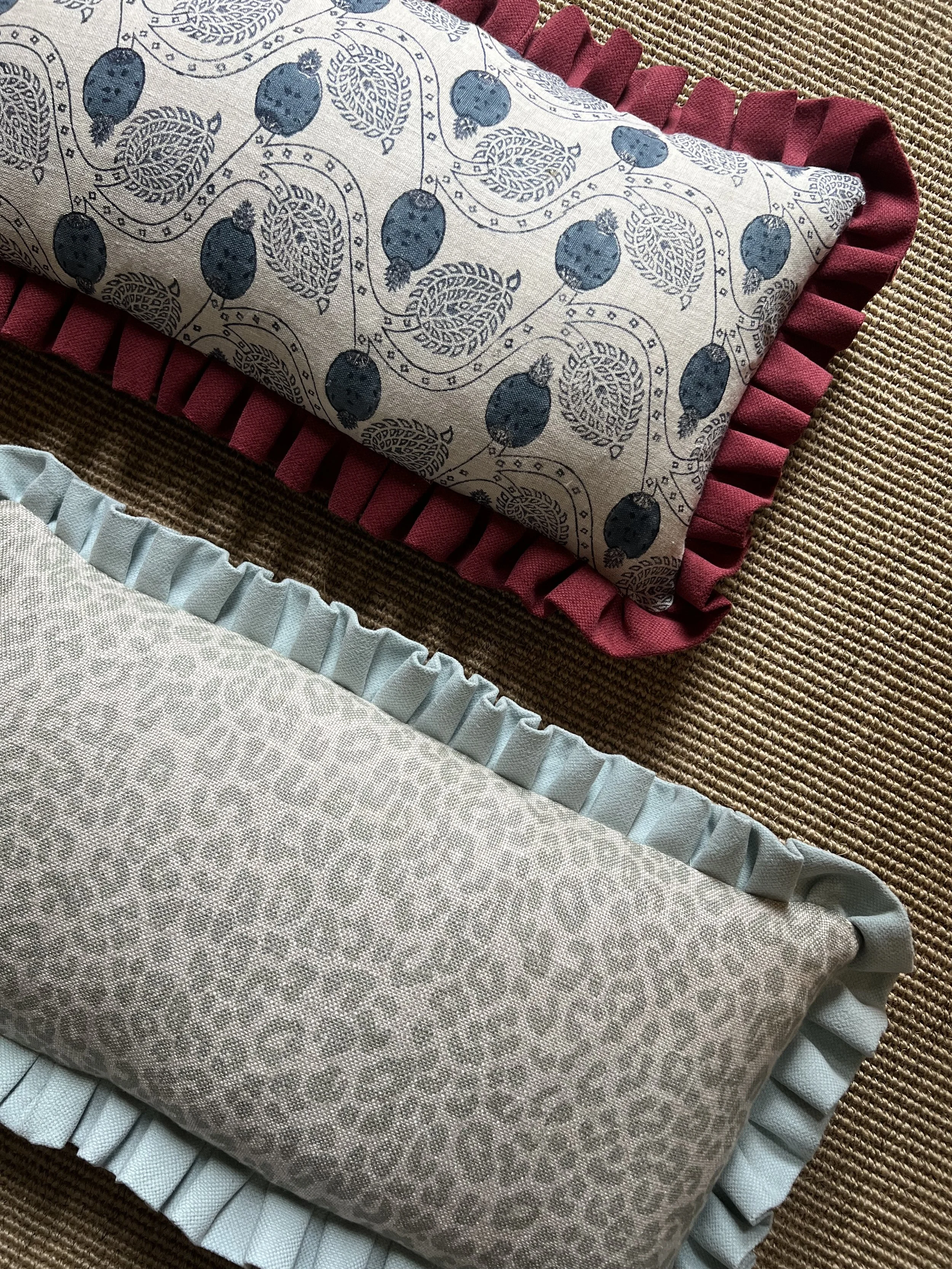 All my cushions are made using fabric remnants which would have otherwise have gone to waste. It is such a joy to pair the gorgeous patterns up and create something which is truly unique for you! You can be involved in the process and choose any size, your contrast frill or piping and your cushion back!